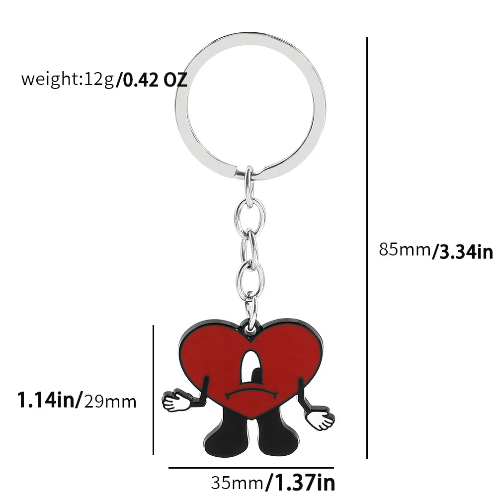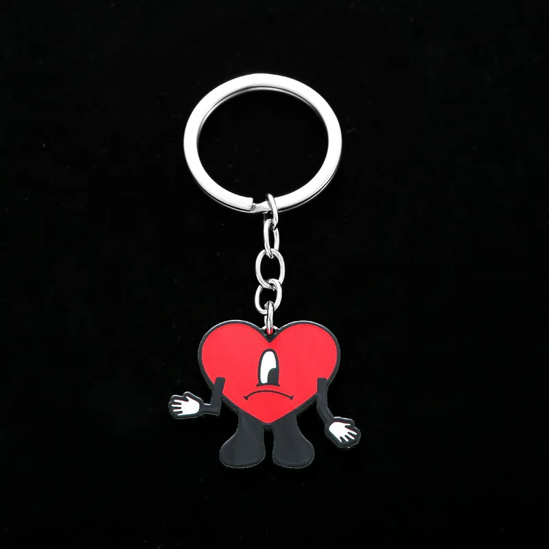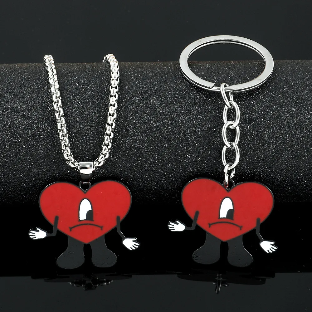 Hip Hop Trend Bad Bunny Necklace Cosplay Singer Rabbit Red Heart Pendant Neck Chain Cute keychain Decoration Jewelry Accessories